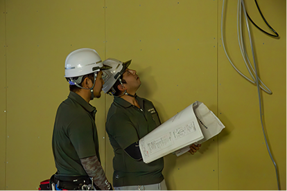 リンテックの社員が現地に赴き、高圧・低圧を含む電気設備工事について、設計・施工・安全管理の観点からアドバイスを行います。単なる技術提供ではなく、実際の施工現場に立ち会いながら、課題や改善点を共有し、現場に即した解決策をともに考えていきます。